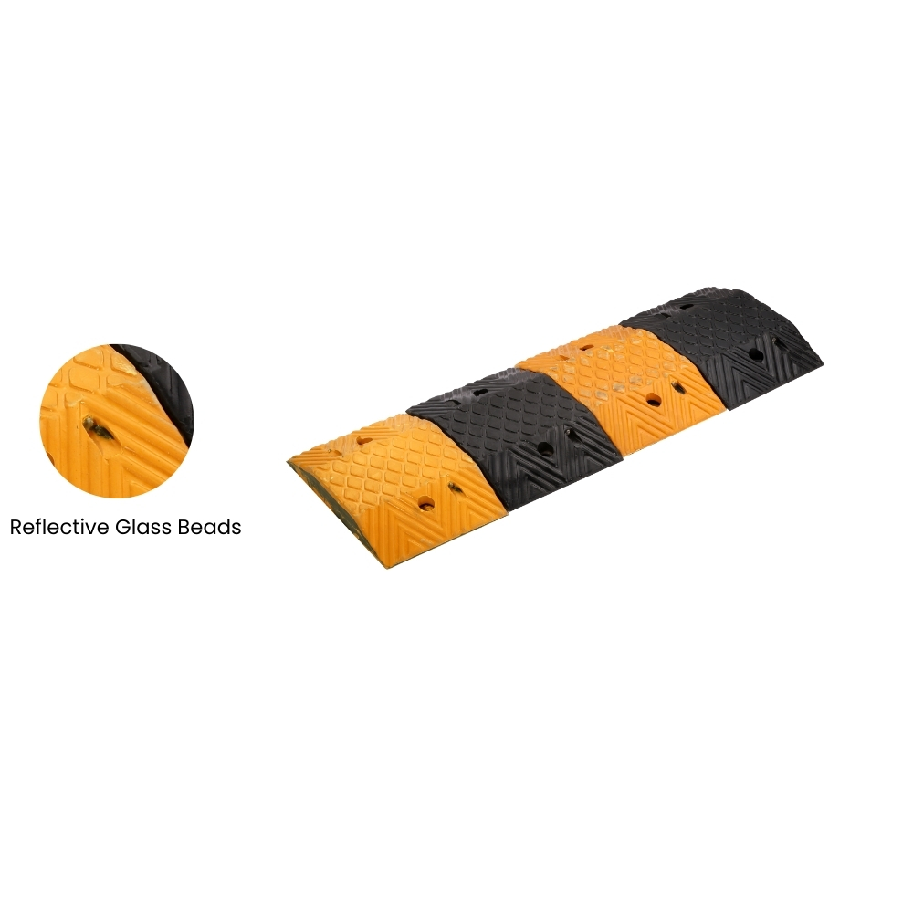 Aktion Speed Bumps are durable, interlocking plastic units with high-visibility Black & Yellow coloring, UV protection, and reflective studs for long-lasting, safe use in all weather conditions.