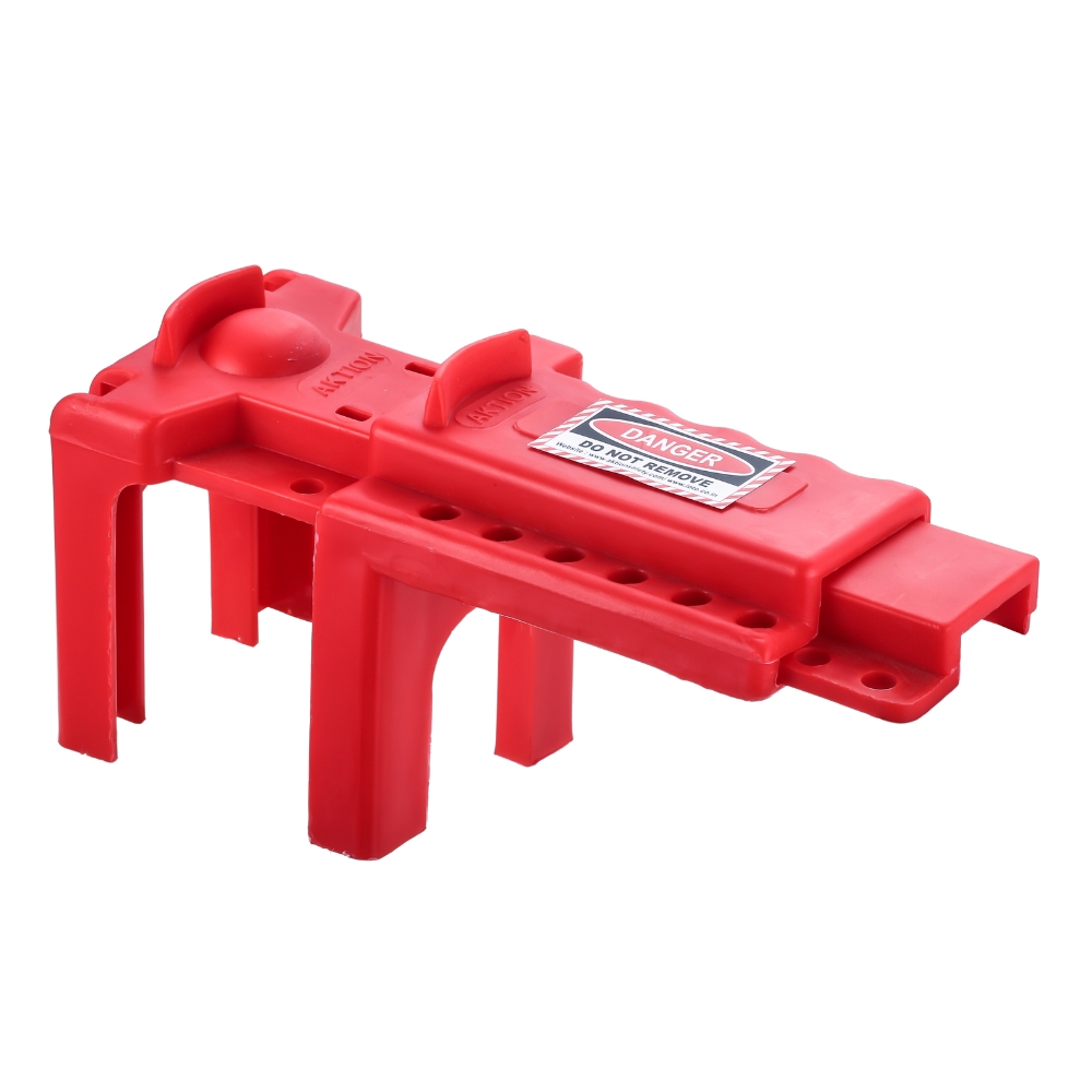 A double-leg ball valve lockout clamps securely around the valve handle to keep it in the OFF position during maintenance. Its two-part design supports up to six padlocks for team lockout, fits a wide range of valve sizes, and is durable, corrosion-resistant, quick to install, and LOTO compliant.