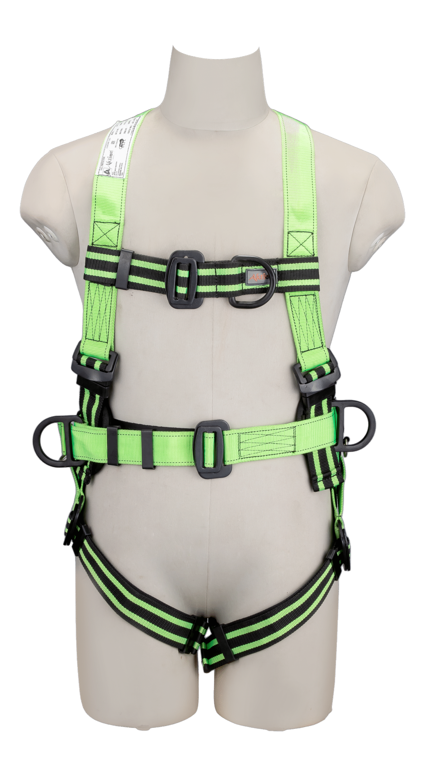 - 3 Attachment Points – Dorsal D-ring for fall arrest, Sternal for ladder/tower climbing, lateral D-rings for work positioning