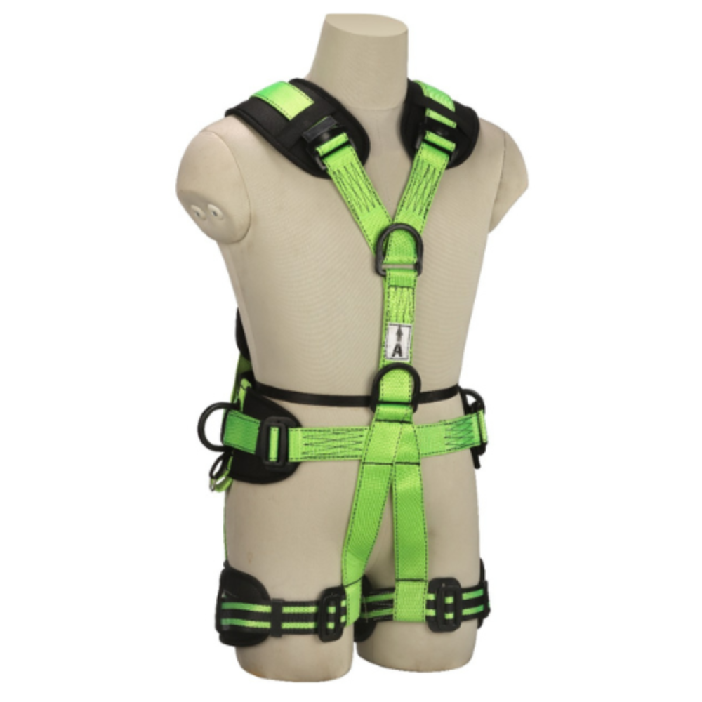 - Five Attachment Points – 1 Dorsal D-ring for fall arrest, 1 Sternal D-ring for vertical access/rescue, 2 Lateral D-rings for work positioning, 1 Ventral D-ring for rope access.